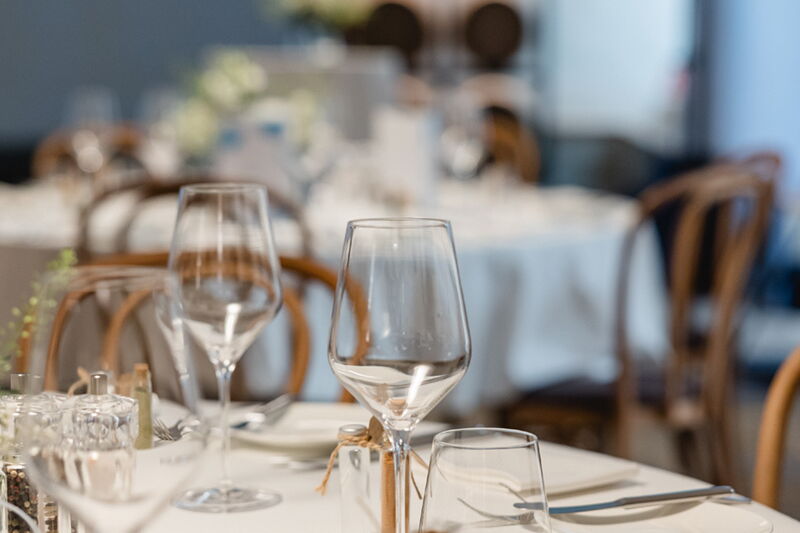 Zusätzlich zum Festsaal, der Platz für 60 bis 128 Gäste bietet, erwartet euch ein separater Bereich mit moderner Bar sowie eine Garderobe die auch als Abstellraum dienen kann.